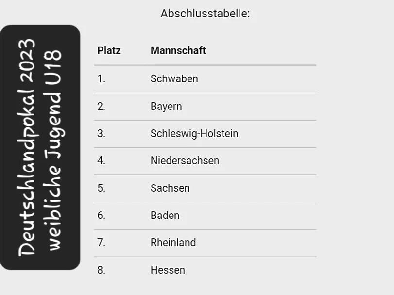 Die sächsische weibliche Jugend U18 belegte beim Deutschlandpokal den 5.Platz. Nach 2 Siegen gegen Niedersachsen und Hessen und einer Niederlage gegen Bayern belegten die Grün-Weißen den 2.Platz in der Vorrundengruppe A. Im Viertelfinale unterlagen die sächsischen Frauen Schleswig-Holstein 8:11; 13:11; 6:11. Mit klaren Siegen gegen Hessen und Baden sicherten sich die Grün-Weißen Platz 5.