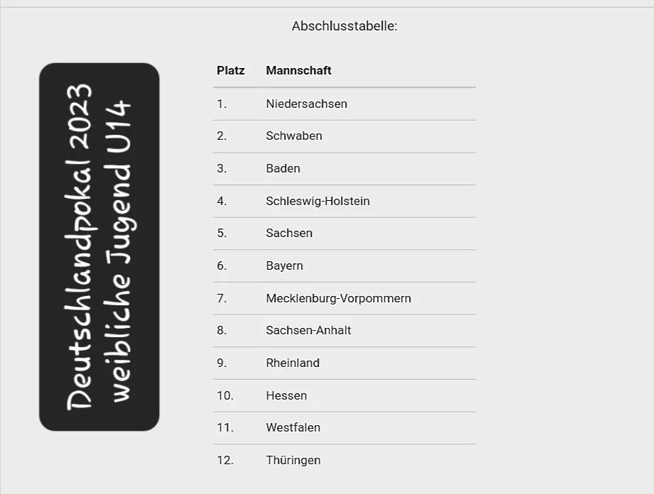 Die sächsische weibliche Jugend U14 belegte beim Deutschlandpokal einen tollen 5.Platz. In der Vorrunde sicherte sich das Team mit 3 Siegen und 2 Niederlagen den 3.Tabellenplatz und damit den Einzug in die Endrunde. Nach einer 8:11; 5:11-Niederlage gegen Schleswig-Holstein im Viertelfinale sicherten sich die Grün-Weißen mit einem 11:8; 11:7-Sieg gegen Bayern den 5.Platz.