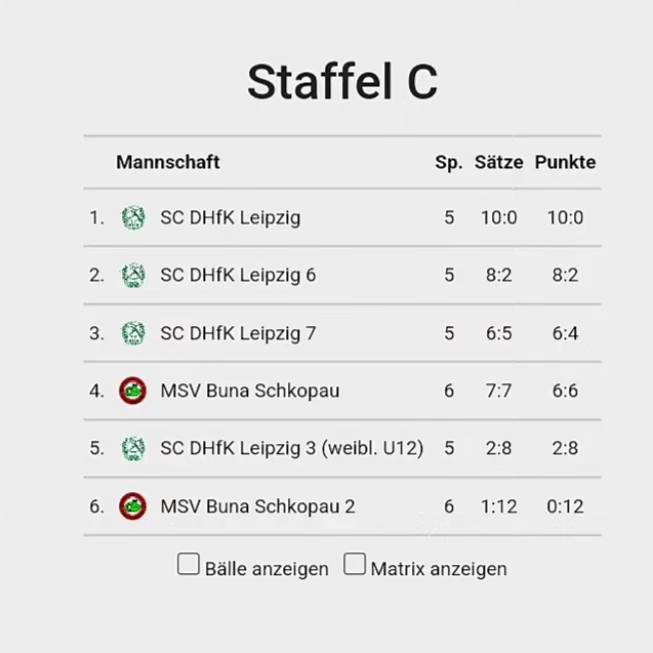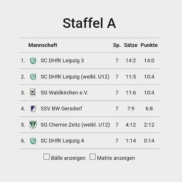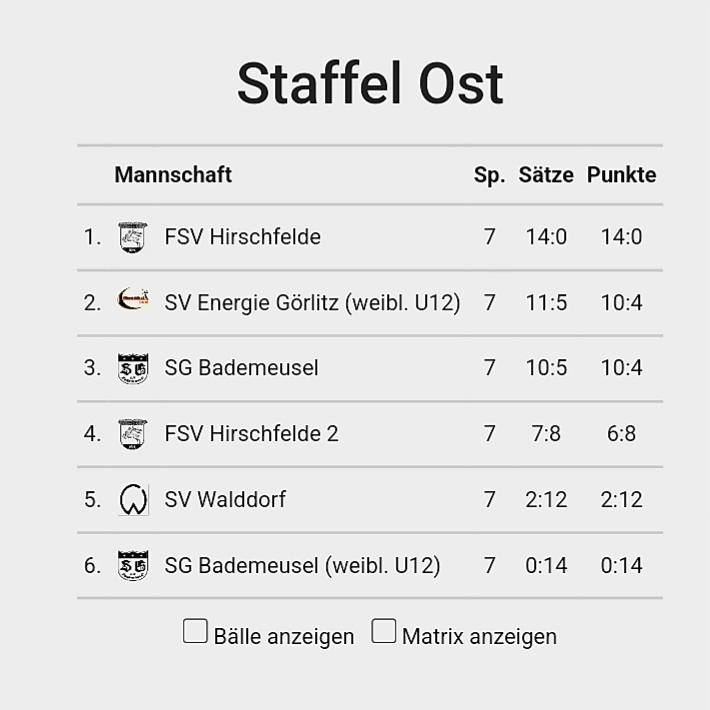 Am vergangenen Wochenende ging der Spielbetrieb bei der Jugend U12 in die nächste Runde. In der Dresdner Bezirksliga führen der FSV Hirschfelde (Staffel Ost) und der SV Dresden-Mitte (Staffel West) die Tabellen an. In der Bezirksliga Leipzig/Chemnitz steht jeweils ein Leipziger Team an der Tabellenspitze.
